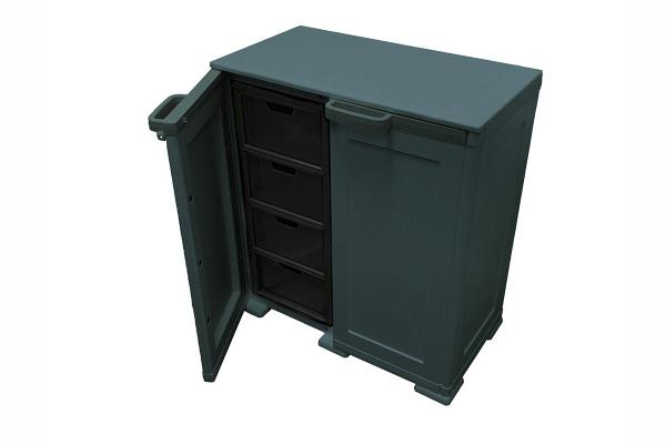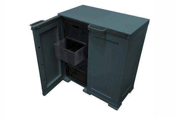Robusto armario de almacenaje para tu instalación permanente. Este armario está fabricado con un resistente material, capaz de soportar condiciones climáticas cambiantes.