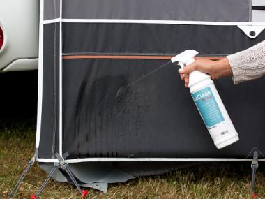 If your awning is leaking, the problem can usually be fixed using AquaTex special reproofing spray.
