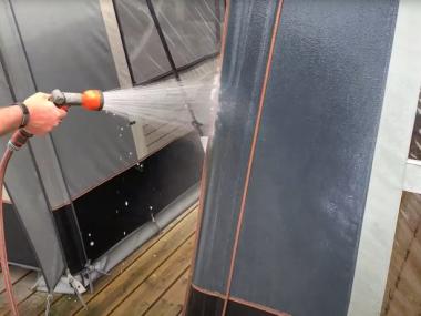 When cleaning the canvas and windows, it’s important not to use regular household detergents.