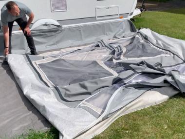 Awnings are frequently wider inside, next to the caravan, than they are at the front. That’s why it’s a good idea to know the floor area before buying carpet or any other flooring.